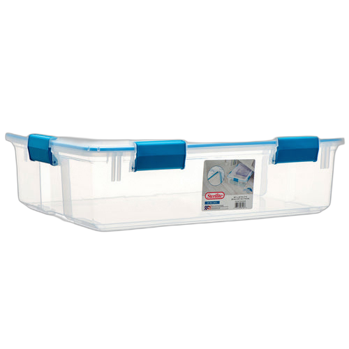WHOLESALE STERILITE #4304 STORAGE GASKET BOX 37QT CLEAR W/ BLUE AQUA SOLD BY CASE