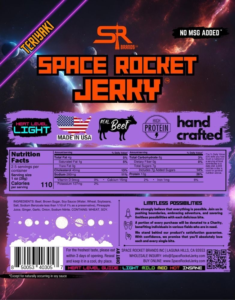 Space Rocket Jerky Teriyaki 2.5oz, 10ct Beef Jerky [1 Case Price]