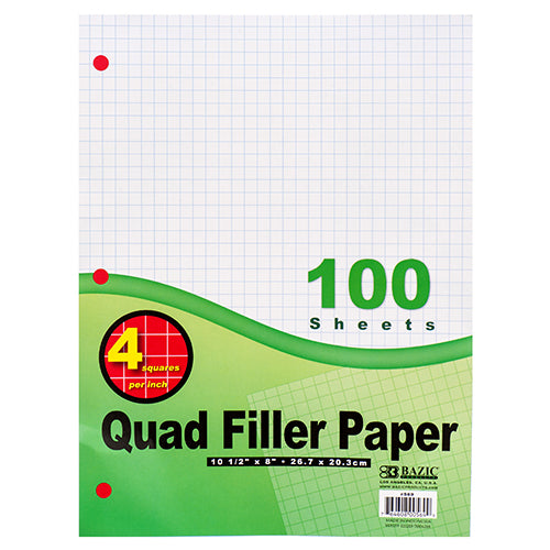 WHOLESALE BAZIC FILLER PAPER 100 CT QUAD RULED SOLD BY CASE