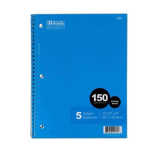 WHOLESALE BAZIC NOTEBOOK 150CT 5-SUBJECT COLLEGE RULE SOLD BY CASE