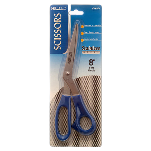 WHOLESALE BAZIC SCISSORS 8 BENT HANDLE STAINLESS STEEL ASST CLR SOLD BY CASE