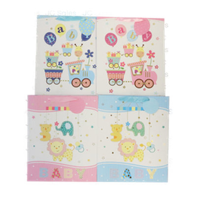 Baby Boy Gift Bag Foil Accent Ribbon Handl Asst Lg