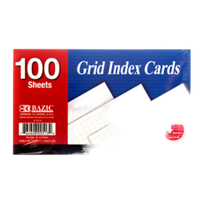 Wholesale Bazic Index Card Grid 100Ct 3 X 5″ #513. Category: Back to School – Back to School.