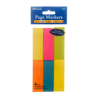 Bazic Note Post It 6Pc Neon Asst Clr #5142