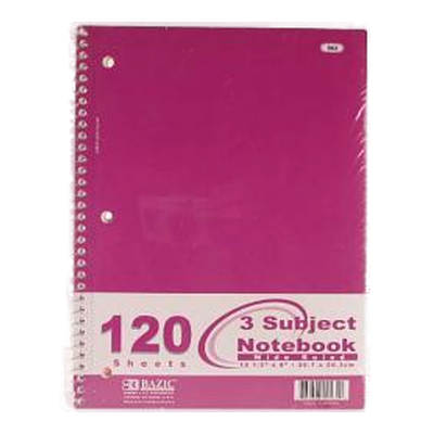 Bazic Notebook 120 Ct 3 Subject Wide Rule