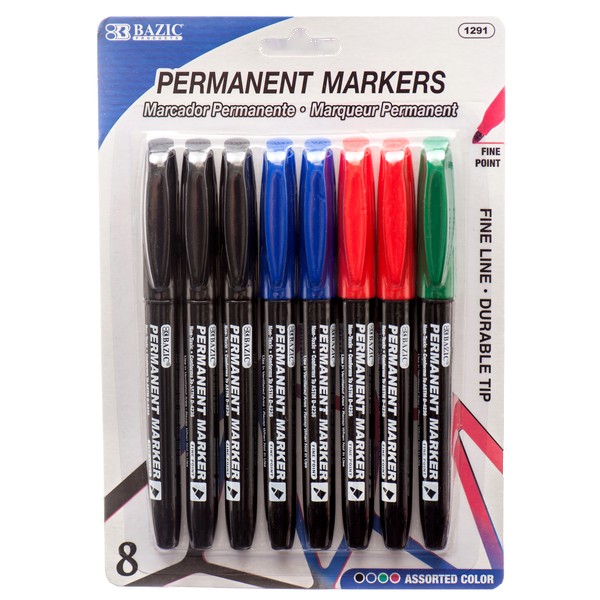 Bazic Permanent Marker 8 Asst Colors #1291