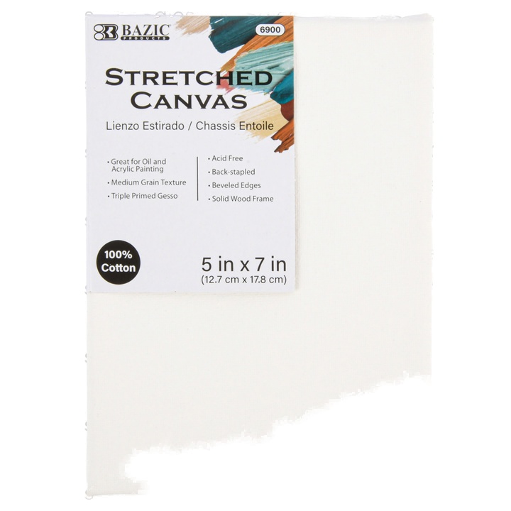 Bazic Stretched Canvas 100% Cotton White 5 X 7 In