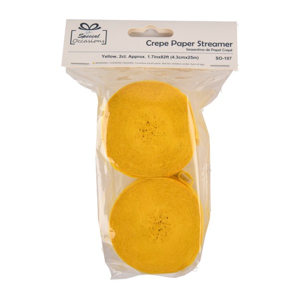 Crepe Streamers Yellow 1.7In X 82Ft Roll 2 Ct