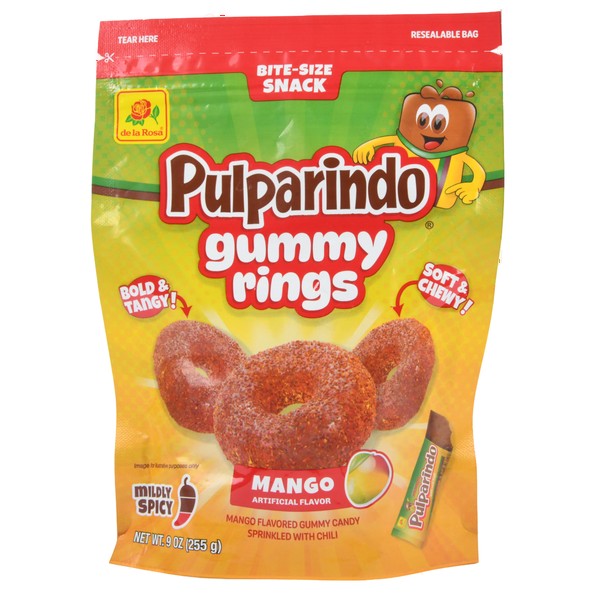 Wholesale De La Rosa Pulparindo Gummy Rings Mango 9 Oz. Category: Candy – Candies.