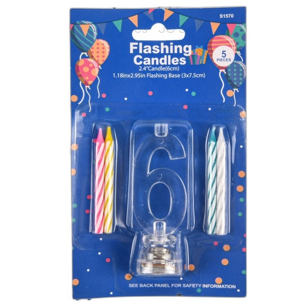 Flashing Birthday Candles #6 5 Pc