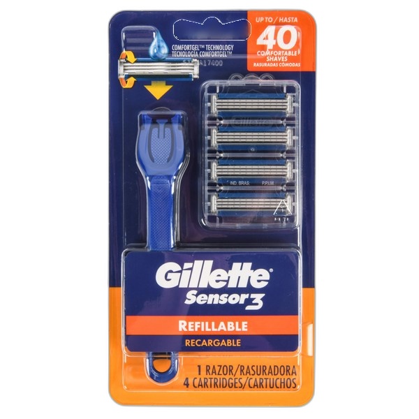 Gillette Sensor3 Refillable Razor Handle+4 Blades