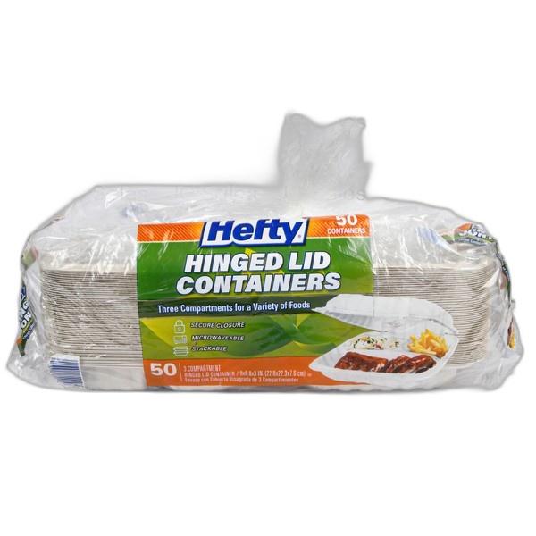 Wholesale Hefty 9″ Earthchoice Hinged Lid Container 3-Compartment 50Ct. Category: Party Supply – Cups & Plates.