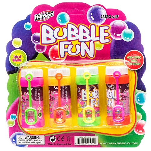 Hs Bubbles Solution W/Wand Asst Colors 4 Pk