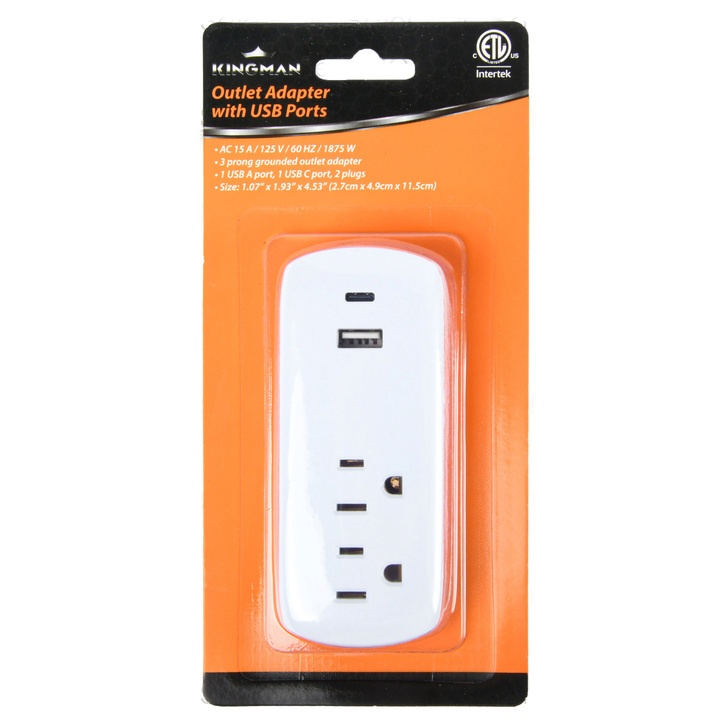Kingman Outlet Adapter 2 Plugs Usb & C Port