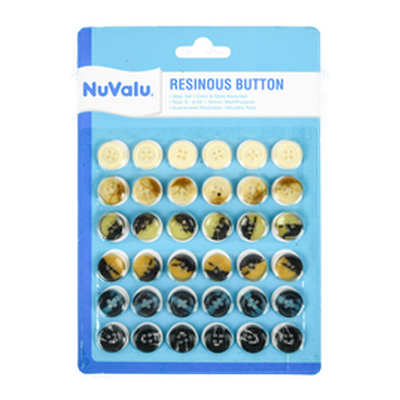 Nuvalu Button Resinous 36 Ct 15Mm Asst Clr