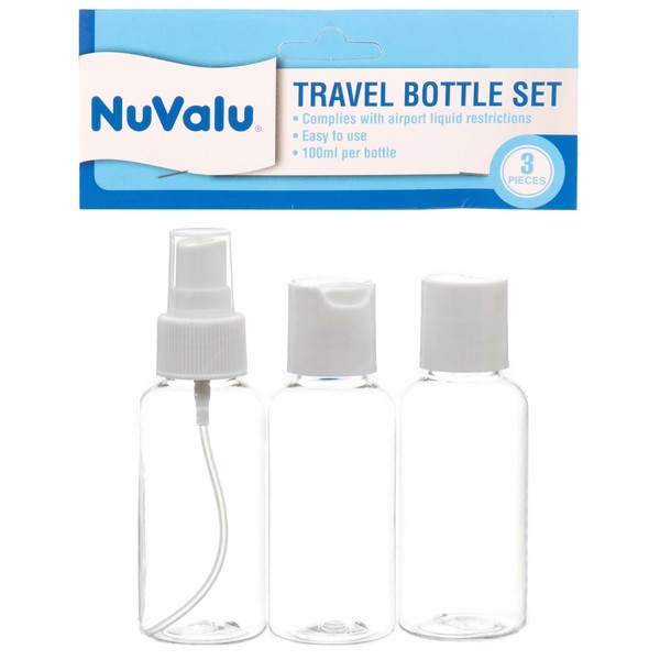 Nuvalu Plastic Travel Bottle 100Ml/44G 3Pcs Set