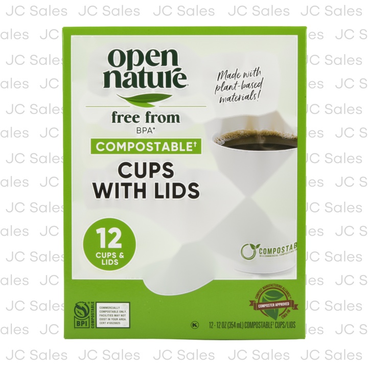 Plastic Cup W/ Lid Open Nature 12 Cups 12Oz