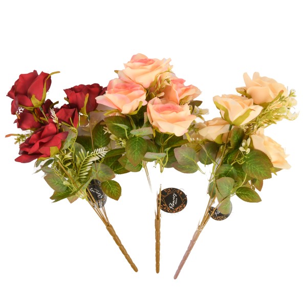 Wholesale Plastic Rose 5Heads Asst 5Color. Category: Decoration – Artificial Flowers.