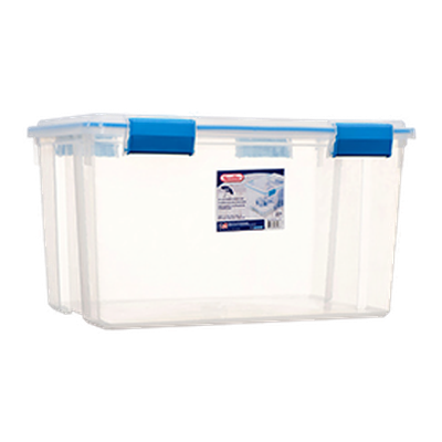 Wholesale Sterilite #4304 54Qt Gasket Box Clear W/ Blue Handles. Category: Home Care – Laundry Accessories.