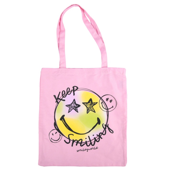 Tote Bag 100% Cotton Keep Smiling Face Pink
