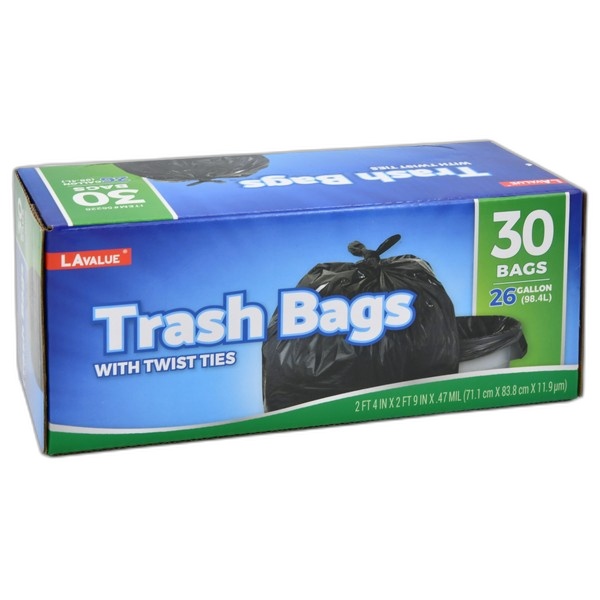 Trash Bags 26Gal/30Ct Black W/ Twist Ties