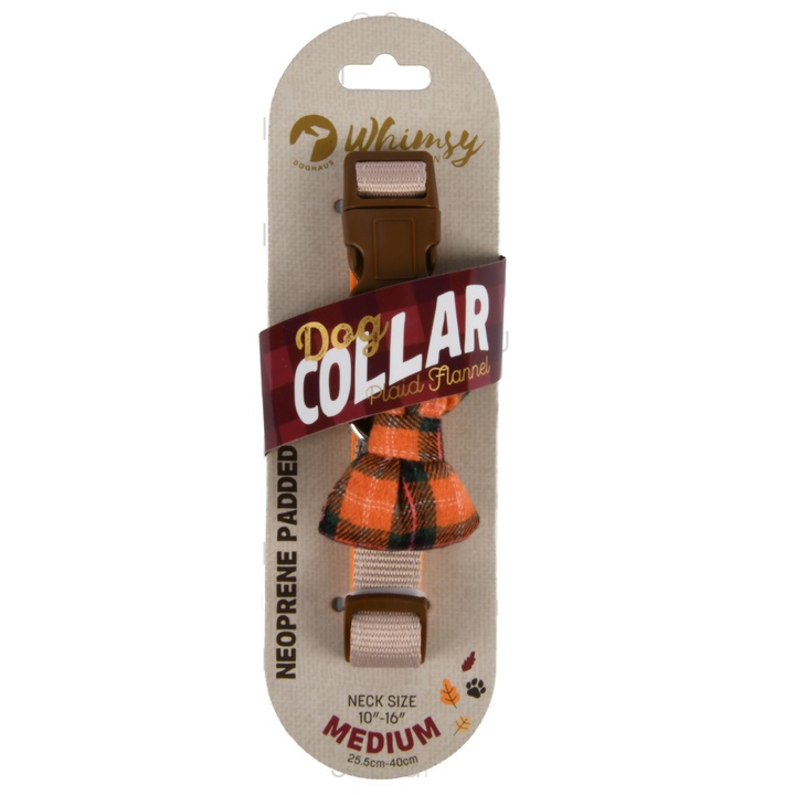 Whimsy Dog Collar W/Plaid Bow Brwn Asst Sz quantity