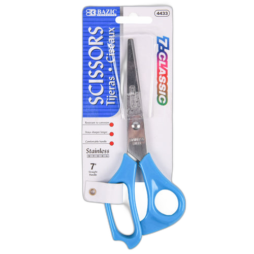 WHOLESALE BAZIC SCISSORS 7 STAINLESS STEEL ASST CLR #4433 SOLD BY CASE