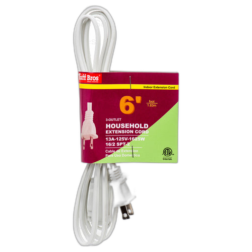 WHOLESALE EXTENSION CORD 6 FT WHITE ETL SOLD BY CASE