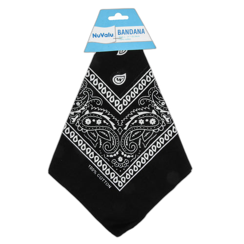 WHOLESALE NUVALU BANDANA BLACK 100% COTTON 21 X 21 SOLD BY CASE